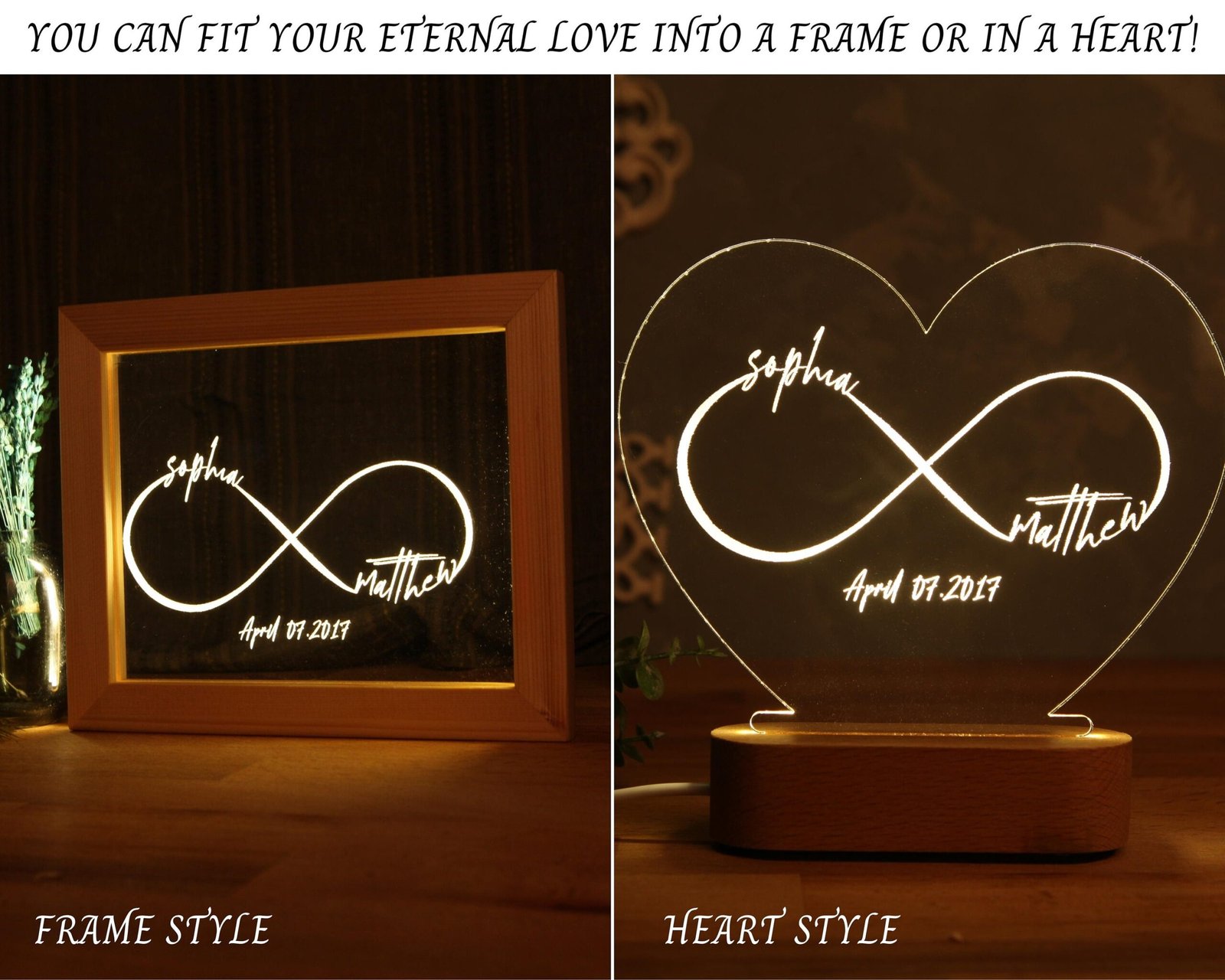 ♾️ CUSTOM INFINITY NIGHT LIGHT This night light is for those who cannot keep inside their eternal love! Just as your love illuminates your life, this lamp will illuminate your room like the sun. When your girlfriend/boyfriend/wife/husband is not with you, you will find her/his warmth in this lamp and at the same time, the warmth of your eternal love reflected by the light will help you sleep. After all, can there be a more restful sleep than sleeping in the arms of love?