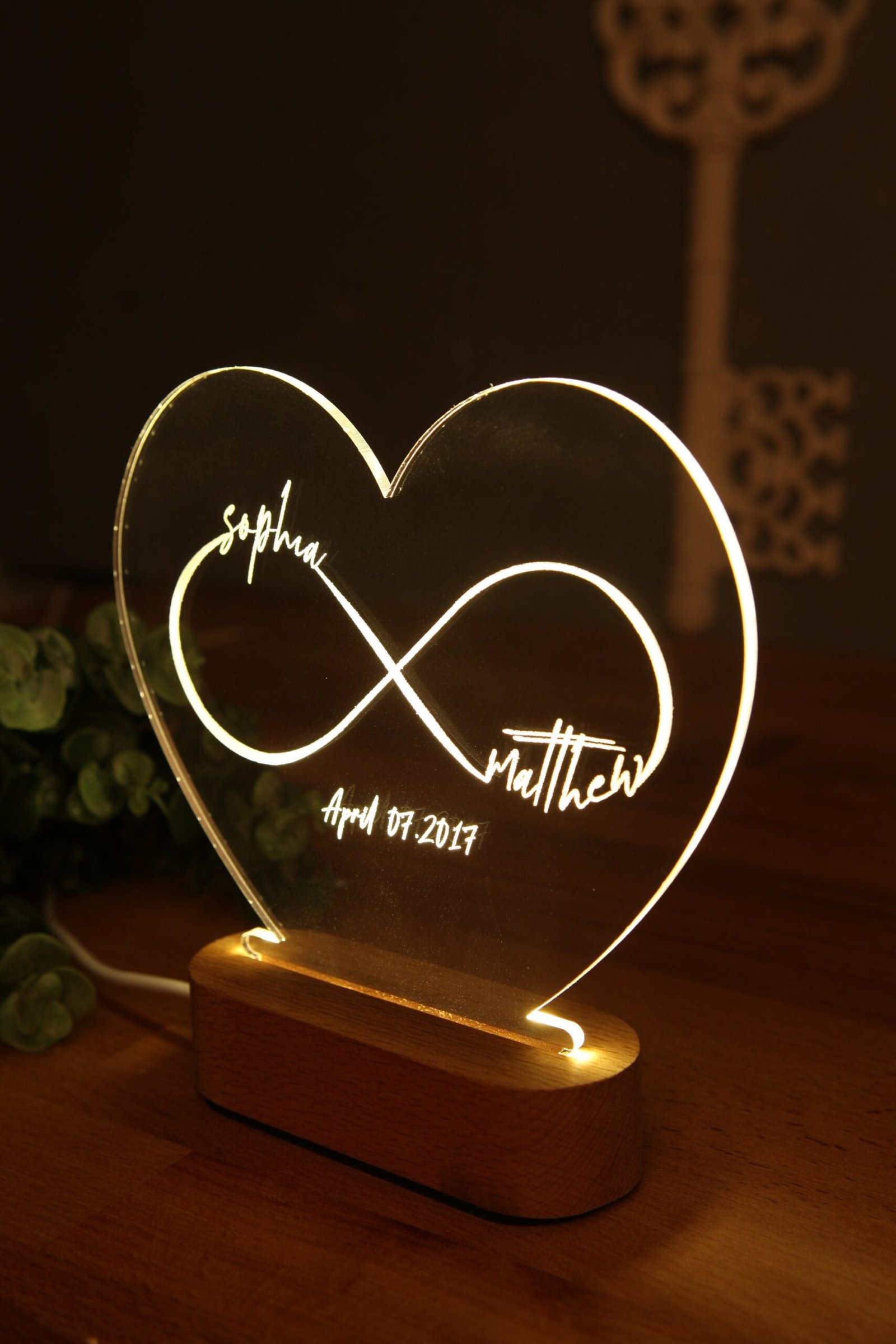 Made with premium acrylic and mounted on a durable wooden base, the gentle, ambient glow of this lamp turns any room into a sanctuary of affection. It’s more than a decoration—it’s a promise.