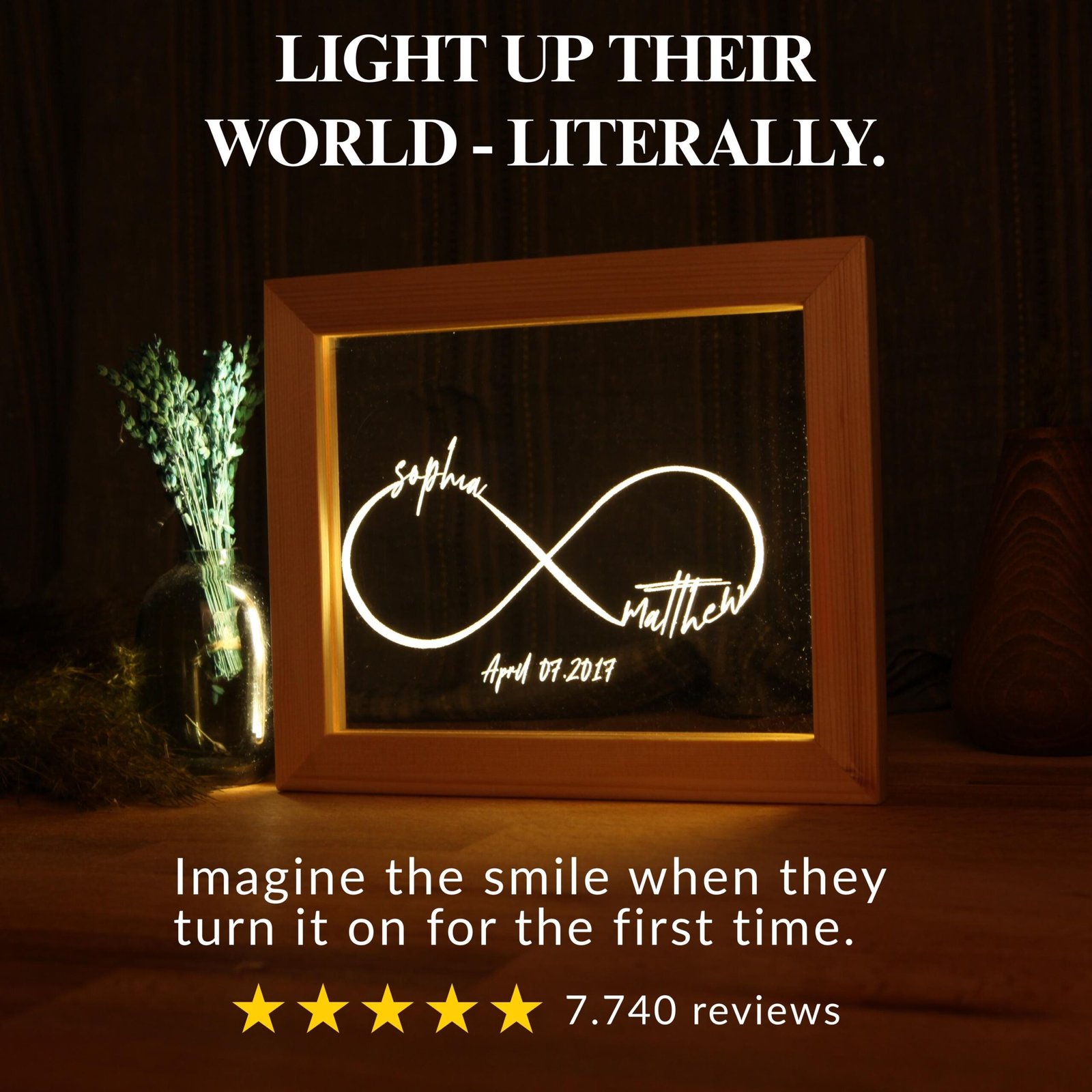 Whether you’re celebrating years of togetherness or kindling a new flame, the Personalized Infinity Night Light is the perfect expression of love that knows no bounds. Thoughtfully crafted and beautifully lit, this piece brings the symbol of forever into your daily life.